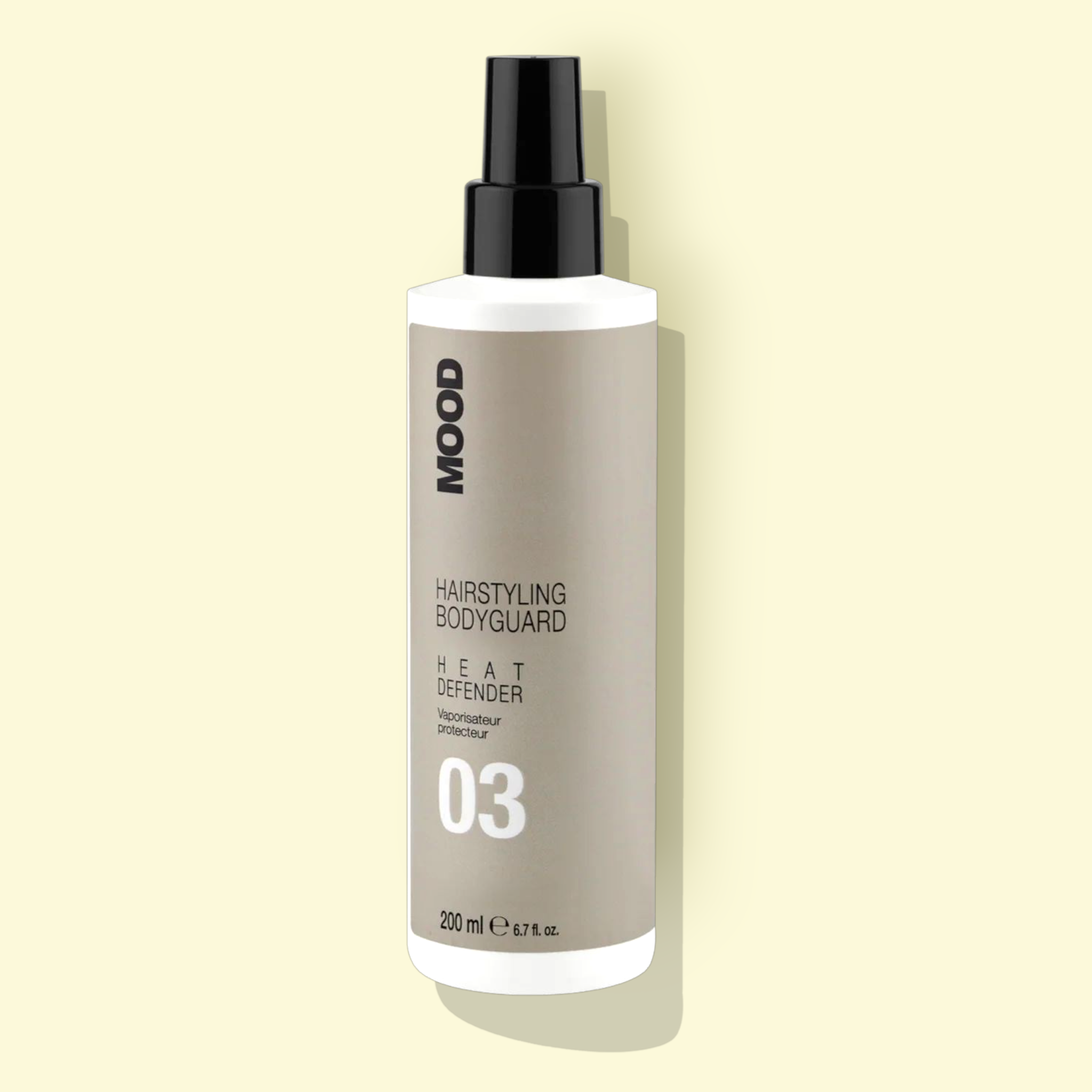 Mood 03 Heat Defender 💨💎 Uno spray protettivo professionale ideale per tutti i tipi di capello, formulato per offrire una barriera termica efficace contro il calore di phon, piastra e ferro. La sua azione avvolgente contribuisce a preservare la vitalità e il colore, prevenendo lo sbiadimento e mantenendo la chioma luminosa, sana e disciplinata. Perfetto sia durante lo styling che come base protettiva per look impeccabili ✨💁♀️.