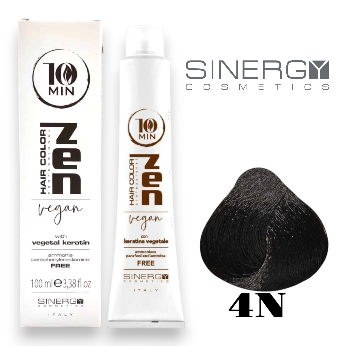 SINERGY ZEN PROFESSIONAL HAIR COLOR 10 MINUTI VEGAN è una fantastica crema profumata per la colorazione con cheratina vegetale, senza ammoniaca e Ppd. La sua innovativa formulazione, unica al mondo, offre un’applicazone a tempi record, con straordinarie performance. Offre un’esperienza piacevole in salone grazie alla sua particolare profumazione. L’assenza di esalazioni ammoniacali permette al professionista e alla clientela di operare col massimo comfort e in sicurezza.